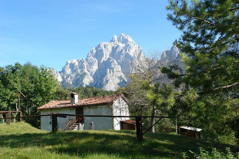 La casera durante la guerra era il centro logistico militare della valle. Vicino alla malga una chiesetta in ricordo dei caduti