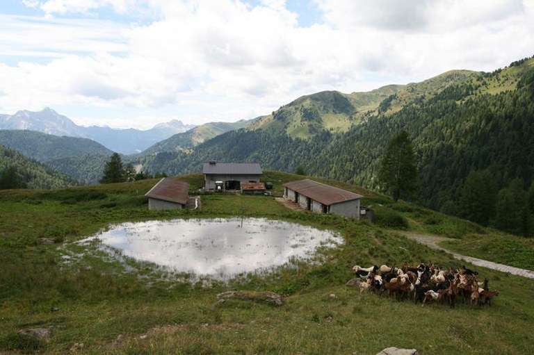 Da malga Losa, si prosegue sino alla casera di malga Forchia, si scende sulla destra per poco più di un chilometro e si giunge alla casera di malga Valuta.